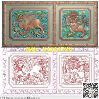 藏式仿古麒麟绣球八宝兽头茶几屏风牙板精雕图麒麟围板jdp灰度图bmp电脑雕刻浮雕图数控雕刻机图素材