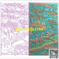 竖向镂空松树梅花鹿竖屏挂屏山水梅花鹿屏风玄关大门门板带线精雕图jdp灰度图bmp电脑雕刻浮雕图数控雕刻机图素材