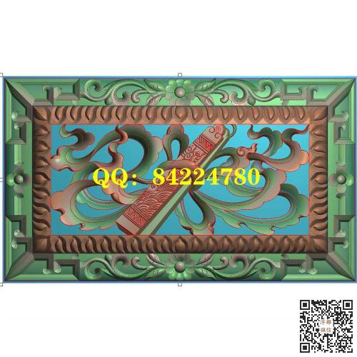 横板横向藏式八宝镂空玉书画轴围板精雕图jdp灰度图bmp电脑雕刻浮雕图数控雕刻机图素材