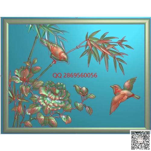 竹子鸟门板精雕图jdp灰度图花鸟竹子背板竹报平安bmp电脑雕刻浮雕图数控雕刻机图素材