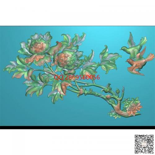 牡丹花鸟精雕图jdp灰度图牡丹花门板bmp电脑雕刻浮雕图数控雕刻机图素材