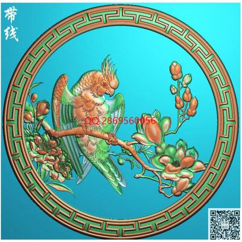 圆形回纹边框锦绣前程玉兰鹦鹉圆挂匾带线精雕图jdp灰度图bmp电脑雕刻浮雕图数控雕刻机图素材